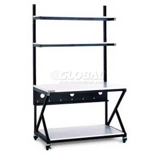 The Kendall Howard Performance 200 Series LAN Stations/Workbenches have a 28" deep lower shelf providing plenty of depth for storage under the work surface. Two 14" deep modular shelves form the lower shelf and together have a weight capacity of 500 lbs., making this LAN station both strong and functional. The two 16" deep upper shelves adjust in any increment and the work surface height is fixed at 30". Another feature is the built-in cable management channels which keep network cables and power cords neat and organized. Its completely modular design makes it simple to create the perfect work station. Simply add the accessories needed to create to work station suitable for you. Features: *Shown with optional casters (not included)Completely modular designUniversal preset accessory mounting holesAssembles in less than 30 minutesAdjust upper shelving in any incrementIncludes two upper shelves, one full bottom shelf1,000 lb. weight capacityMade in the USALimited Lifetime Warranty.