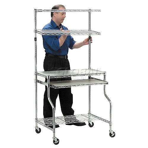 Buy Global Industrial Chrome Wire Shelf Mobile Computer LAN Workstation, 31-1/2"W x 24"D x 63"H for $295.95 at @ Globalindustrial.com