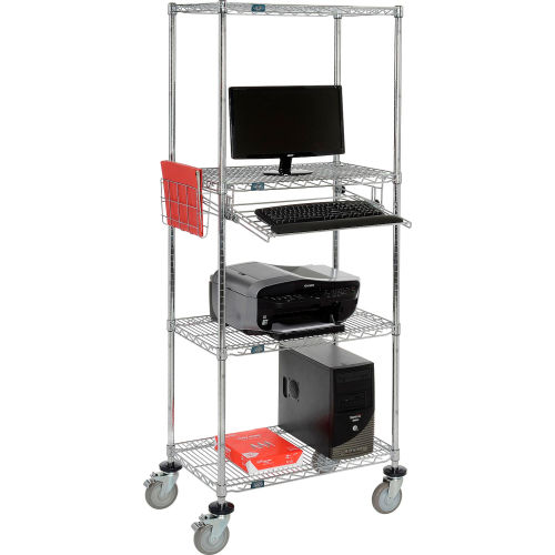 Buy Nexel 4-Shelf Mobile Wire Computer Workstation with Keyboard Tray, 30"W x 18"D x 79"H, Chrome for $329.95 at @ Globalindustrial.com