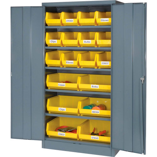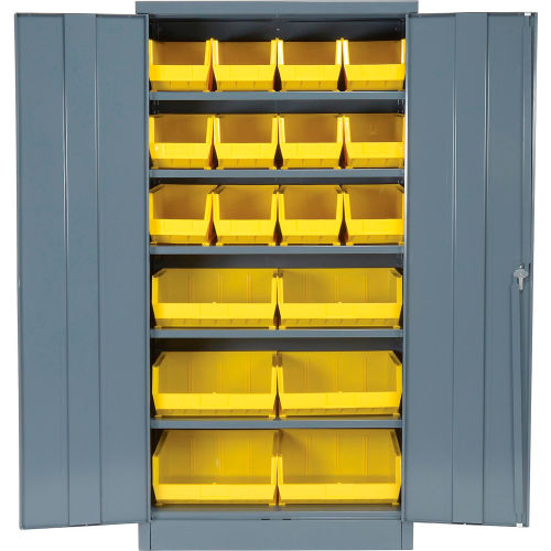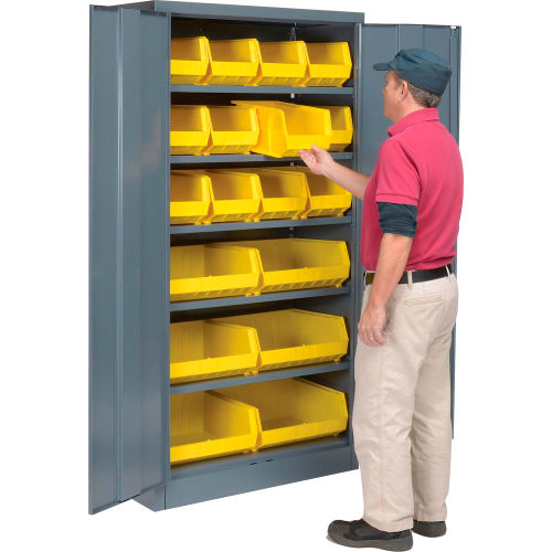 Buy Locking Storage Cabinet 36"W X 18"D X 72"H With 18 Yellow Shelf Bins and 5 Shelves Assembled for $299.95 at @ Globalindustrial.com
