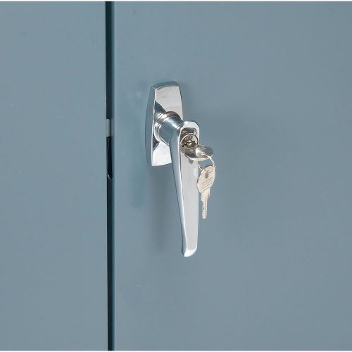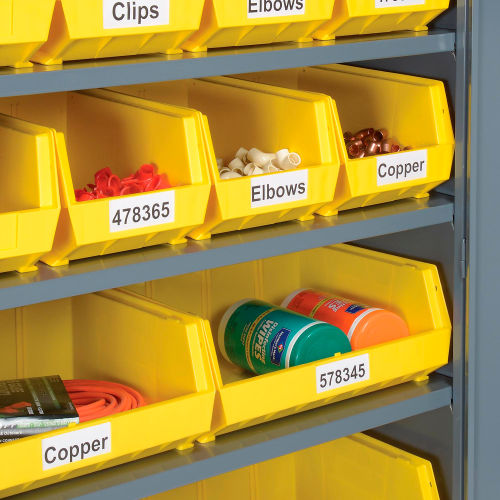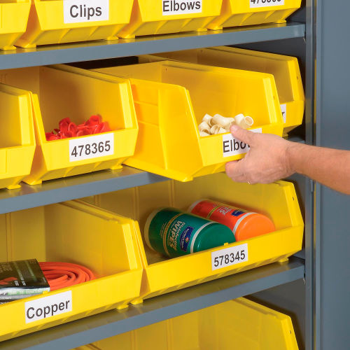 Locking Storage Cabinet 36"W X 18"D X 72"H With 18 Yellow Shelf Bins and 5 Shelves Assembled Dust Free, Secure and Organized Storage Storage cabinet features reinforced doors that open a full 180° for complete access and close with a three-point locking system and key lock. Break resistant polypropylene plastic bins have generous hopper openings offer easy viewing and access. Bins fit efficiently on heavy-gauge steel adjustable shelves. Powder coat exterior finish. Assembled cabinets are not returnable.Cabinet measures 36"W x 18"D x 72"H. Image shows the 48"W x 24"D x 78"H cabinet with 20 bins. Customize your storage with additional bins.