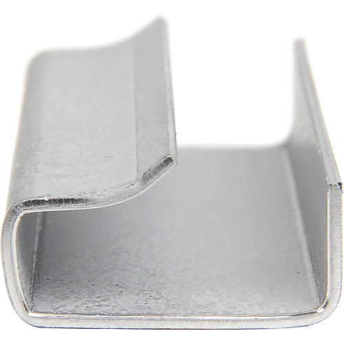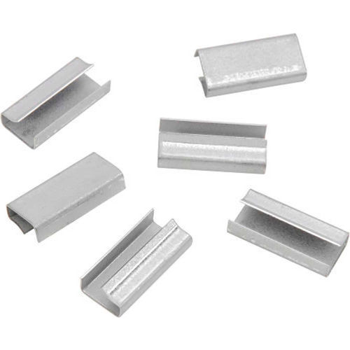 The strapping seals are made for polypropylene, polyester strapping. They have thickness of 0.026 ga. These steel seals are sold in box quantities of 1000 per box.
