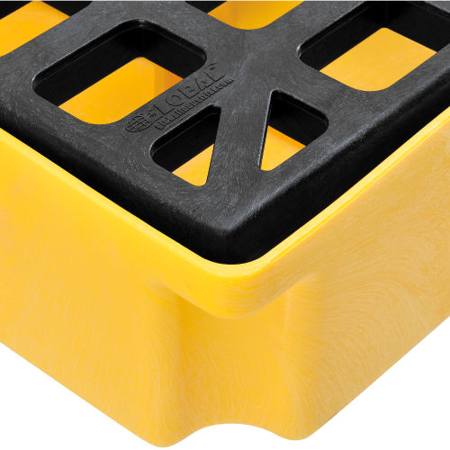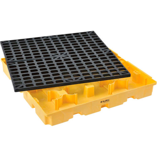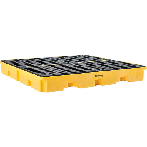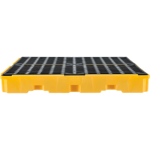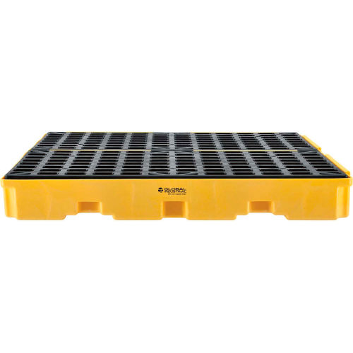 Global Industrial 4 DRUM SPILL CONTAINMENT MODULAR PLATFORM Spill Containment Platform features a low profile design for easier loading and unloading. Multiple modular Spill Platforms can be arranged in a countless number of configurations to meet your specific requirements using the integral sidewall channel connectors. Durable high-density polyethylene (HDPE) construction is impact resistant and is compatible with a wide range of chemicals. Removable poly grate allows for easy sump access and cleaning. Spill pallet has a 65 gallon liquid capacity and 10,000 lb. load capacity. Unit includes fork pockets for easy 2-way forklift maneuverability. 1 Year Limited Warranty. Note: 4 Drum Platform is comprised of two 2 Drum Platforms.