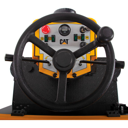 ✓ Manually-activated side brushes for more control when you clean ✓ Stronger motor means more power for faster travel speeds and electronic braking ✓ Built in cup holder and USB charger gives rider the convenience of carrying a beverage while on the job Make cleaning a sweep with the Cat C49R Auto Ride-On Sweeper. This sweeper is equipped with two side brushes, each driven by their own motor, giving operators a cleaning width of 49". Large-capacity tanks allow more time for cleaning and require less refilling. This sweeper also comes with an 18% incline capacity for varying floor levels and is ideal for use on hard floors such as concrete, ceramic tile, marble, and more. Built-in features like self-cleaning filters and a front water mister ensure dust suppression and provide consistent suction, while the seatbelt, bright LED headlight, and a non-slip diamond tread platform help keep the rider safe during use. Overall measurements: 40" W x 55" D x 47" H. Assembled Hopper tank capacity: 26.4 gal. Water tank capacity: 7.9 gal. Suitable for both indoor and outdoor use in dry conditions.
