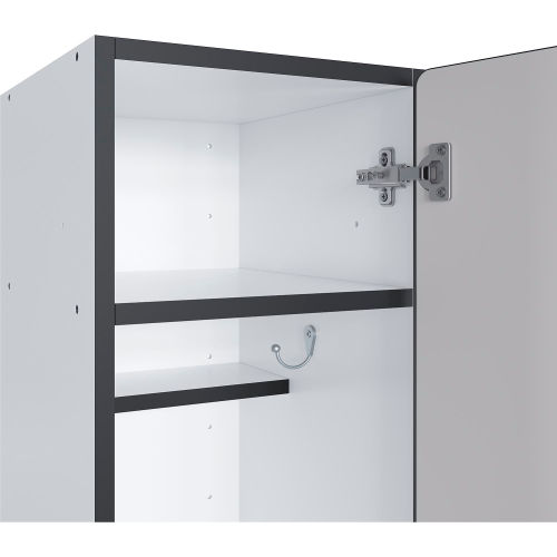 ✓ Electronic vertical keypad lock ✓ Carb II-compliant particleboard covered in durable laminate ✓ Durable and moisture-resistant steel base Elevate the look & feel of your locker room or changing room with this unassembled 1-tier/1-door Global Industrial Digital Wood Locker. Wood lockers give any space a natural warmth that presents a more comfortable and welcoming tone than standard metal lockers plus they are also quieter when they close. The body of the locker is made of 0.70" (18mm) thick Carb II-compliant particleboard covered in a durable high-pressure laminate with heavy-duty concealed steel hinges, and a digital electronic keypad. This vertical keypad lock is easily programmable and can be used in either Public mode for single-use passcodes or Private mode for longer-term individual use. What separates this Global Industrial wood locker from the competition is the durable, moisture-resistant steel base. Typical wood lockers carry the wood to the base, which can warp, peel, or buckle when exposed to persistent moisture such as gym or club locker rooms and spas. The steel base on this locker is designed to deliver elegant performance with a long service life. This version comes unassembled in a gray color. Includes one battery and one master key per lock Door edges are banded with PVC banding Locker doors are 12.0" wide x 0.70" deep Blank steel ID plates included for customization Each compartment includes a 4-5/8" deep shelf and two sets of double prong hooks Optional color-matched gray end panel, #290630 available separately, to present a finished look Ideal for use in: Clubhouses & country clubs, spas & resorts, fitness centers & gyms, executive suites.