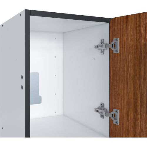 ✓ Electronic vertical keypad lock ✓ Carb II-compliant particleboard covered in durable laminate ✓ Durable and moisture-resistant steel base Elevate the look & feel of your locker room or changing room with this unassembled 4-tier/4-door Global Industrial Digital Wood Locker. Wood lockers give any space a natural warmth that presents a more comfortable and welcoming tone than standard metal lockers plus they are also quieter when they close. The body of the locker is made of 0.70" (18mm) thick Carb II-compliant particleboard covered in a durable high-pressure laminate with heavy-duty concealed steel hinges, and a digital electronic keypad. This vertical keypad lock is easily programmable and can be used in either Public mode for single-use passcodes or Private mode for longer-term individual use. What separates this Global Industrial wood locker from the competition is the durable, moisture-resistant steel base. Typical wood lockers carry the wood to the base, which can warp, peel, or buckle when exposed to persistent moisture such as gym or club locker rooms and spas. The steel base on this locker is designed to deliver elegant performance with a long service life. This version comes unassembled in a cherry wood color. Includes one battery and one master key per lock Door edges are banded with PVC banding Locker doors are 12.0" wide x 0.70" deep Blank steel ID plates included for customization Optional color-matched cherry wood end panel, #290629 available separately, to present a finished look Ideal for use in: Clubhouses & country clubs, spas & resorts, fitness centers & gyms, executive suites.
