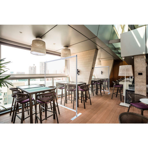 The Global Industrial Free Standing Portable Clear Divider Safety Partition Is Designed For Areas In Need of Social Distancing and Separation of Traffic Flow. The Clear Partition provides a physical barrier designed to permit workplace controls as guided by OSHA. The partition minimizes the opportunity for contact with airborne contaminants, allowing users to feel safe, comfortable, and separated without affecting your dcor or lighting. The clear PVC vinyl panel meets NFPA 701 fire resistance standards, making it safe to use anywhere in your facility. Durable vertical steel frame with aluminum cross-bars features an elegant silver powder coat finish. Lightweight and easy to install with provided hardware. Applications include restaurants between tables or carryout counters, classrooms for student teacher shielding, hotels over check-in counters, bar areas, offices between desks, and manufacturing or food processing environments between workstations. 1 Year Limited Warranty.