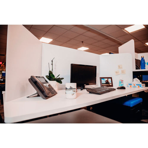 This economical desk shield can easily provide your office with some separation from coworkers. Made of corrugated plastic, these durable shields come 6 in a pack to allow you to quickly outfit a small office to begin the return to work. The back measures 46-1/2" long with 23-1/2" sides and a height of 23-1/2" with an 8" half-moon cutout for wires. These shields give employees space to work while providing proper social distancing. Comes with 6 shields per pack.