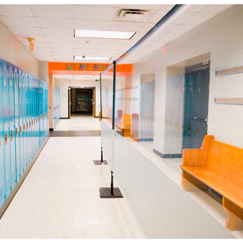 Anchor Porta-Shield Vinyl Divider, 6'W x 6-1/2'H - 1/2 Clear - 1/2 Solid White Great for physically separating people, creating extra walls, dividing hallways and creating one way traffic . Featuring a 1/2 clear - 1/2 solid white vinyl barrier that allows you to feel safe without feeling isolated. Designed to sit on the ground and create barriers around desks, in front of lecterns, for separating lines, hallways, and anything in between! Porta-Shield Dividers feature a 1/2 clear - 1/2 solid white vinyl panel with pockets on all four sides. Securing the vinyl panels to the steel framework is easy, and the finished panel drops right into the broad, low-profile, sturdy base plates. Base plates are designed to overlap so the barriers are seamless when aligned with one another. This virtually break-proof design will not crack, split or chip making one of the top sellers on the market. Baseplate Dimensions: 14-1/2" wide x 1/4" tall.