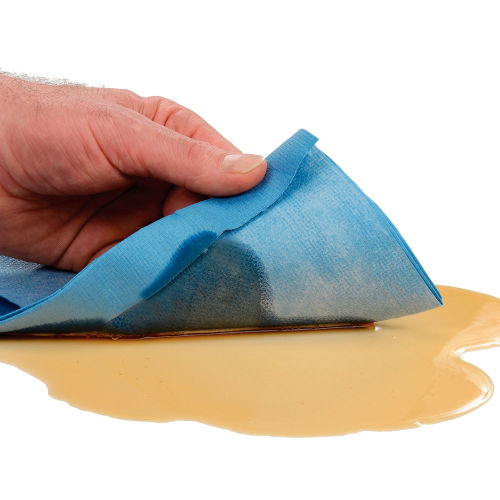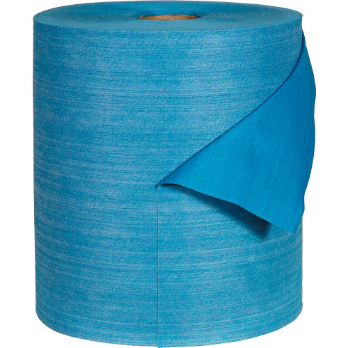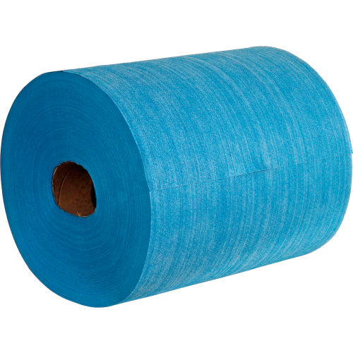 Global Industrial Quick Rags Heavy Duty Jumbo Roll Blue Wipers are designed for maximum strength, absorbency and durability, and are ideal for cleaning and wiping applications in heavy duty industrial, offices, manufacturing plants, food service facilities, hospitality, maintenance departments of health care facilities, schools and universities and more. Global Industrial Quick Rags Heavy Duty Wipers are highly absorbent in water, oil, grease, and cleaning chemicals/solvents. Each non-woven wiper is clean and a consistent size, unlike many industrial rags that keep the user guessing. The heavy duty grade is best used for heavy duty cleaning, industrial machinery cleaning/maintenance, applying/removing chemicals/solvents, and more. Jumbo rolls allow wiper source to be stationary for common areas with multiple users, and feature a longer service interval than pop up boxes. Sheets are perforated for one-at-a-time dispensing and helps reduce over-use and waste. Each sheet is blue and measures 12"W X 13"H. Sold 475 sheets per jumbo roll. Also available in red to prevent cross contamination.