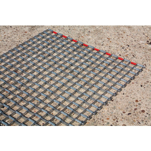 Steel Link Matting Steel Link Matting stops dirt at entranceways, and provides thorough scraping in any direction to clean footwear. Removes and traps dirt, mud, gravel and snow. 1" 1" mesh of 3/8" thick cold rolled strip steel, with 13 gauge galvanized steel connecting rods. Features smooth ends with plastic tubing. Steel Mats are flexible and rust resistant, and easily roll up for cleaning and storage. Dimensions: 30" 48".