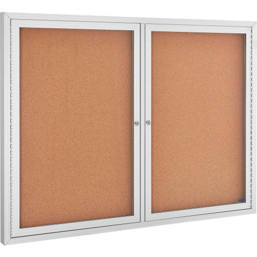 Global Industrial Enclosed Cork Bulletin Board - 48"W x 36"H - 2 Door