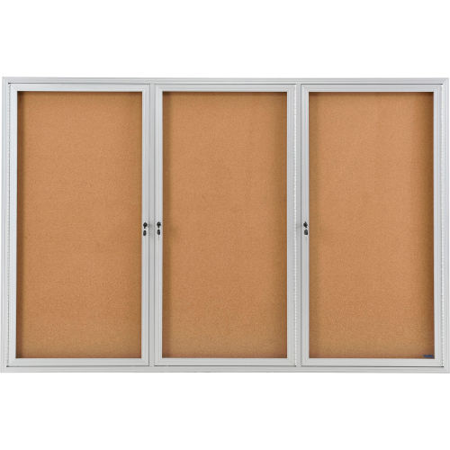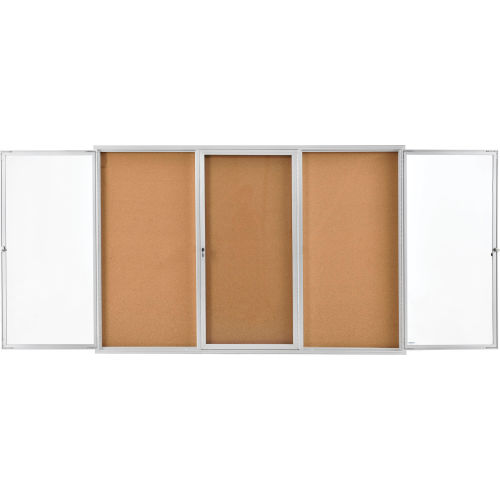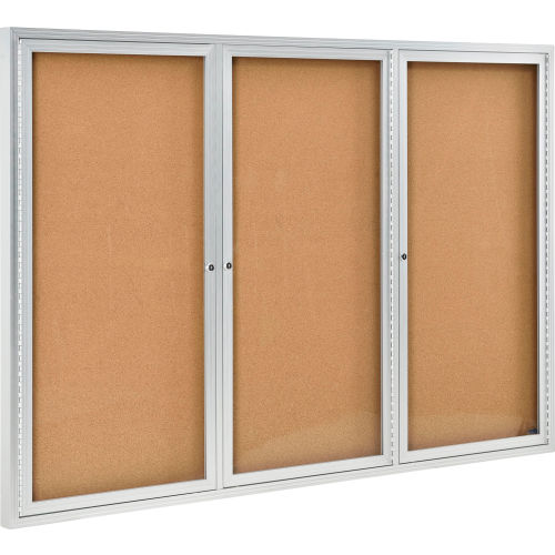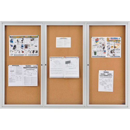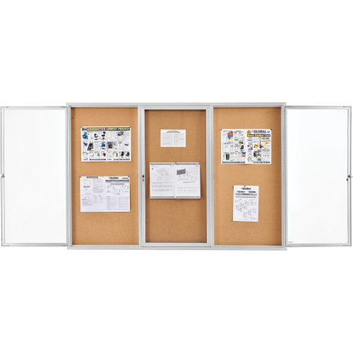 Global Industrial Enclosed Cork Bulletin Board - 72"W x 48"H - 3 Door.
