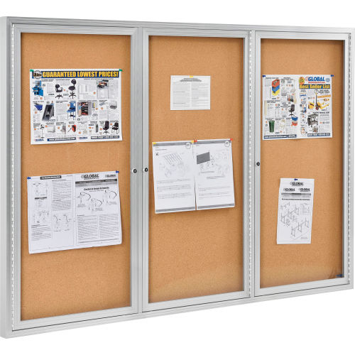 Buy Global Industrial Enclosed Cork Bulletin Board - 72"W x 48"H - 3 Door for $389.95 at @ Globalindustrial.com