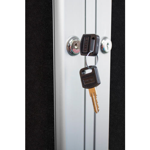 Ghent Enclosed Bulletin Board - 3 Door - Tan Speckled Recycled Rubber w/Silver Frame - x Ghent's Traditional Indoor Enclosed Recycled Rubber Bulletin Board Message Centers meet the measures to call them "GREEN" as they feature materials that are fully recyclable. The Bulletin Board surface is manufactured using 90% post-industrial recycled rubber and the anodized Satin or dark Bronze aluminum frame contains 75% post-industrial material. The shatter-resistant acrylic door panels contain up to 15% post-industrial recycled materials. The tack surface, available in 3 colors, is self-healing and will hold up under the most demanding conditions. It is easy to maintain, colorfast and will resist stains and fading. Doors feature full-length hinges and flush mount locks and keys for added security. Available in 1, 2, and 3 door sizes. Included are concealed corner brackets for easy and secure mounting. Backed by Ghent's 10-year guarantee. For indoor use. Made in the USA. Learn More About Ghent.
