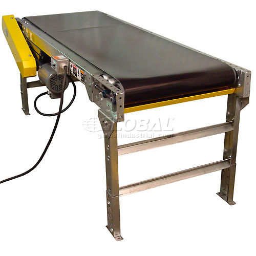 Omni Metalcraft POWER BELT CONVEYOR WITH 6" HIGH SIDE RAILS Shipped complete, including controls. A versatile means of handling a variety of products throughout your facility. Ideal for use in assembly, sorting and inspection. Includes 6"H Side Rails to help prevent cargo from falling during movement. 3-1/2"D x 12 gauge galvanized steel slider bed has black friction surface PVC belt. Includes permanent adjustable leg supports that adjust from 34" to 38" H for added convenience. Standard 60 FPM non-reversing belt speed. Totally enclosed 1/2 HP, 115/230V, 60 Hz single phase motor. Includes 8 ft. power cord and on/off switch for 115V use. Quality features include: crowned and fully lagged 4" drive and tail pulleys with 1-3/16" dia. shafts, 2-1/2" dia. snub roller and 1.9" dia. return rollers, and pre-lubricated, self-aligning ball bearings. Reversible conveyors and replacement parts are available; call for information. Optional Variable Speed Motor (12-60 FPM) upgrade is available to allow greater flexibility. Optional Horsepower upgrade is available to increase Capacity (see chart below).Need a customized system or solution Please reach out to your Global Industrial sales representative and they can get you set up with a custom quote for your conveyor needs.