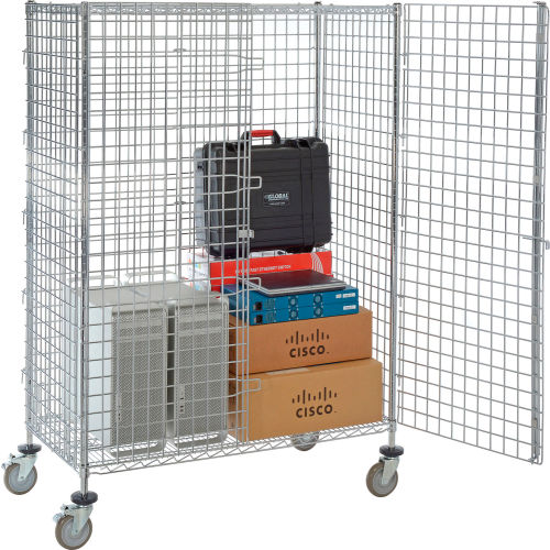 Buy Wire Security Truck, Chrome, 24"W x 48"L x 69"H, Polyurethane, 4 Swivel, 2 Brake Casters for $729.00 at @ Globalindustrial.com