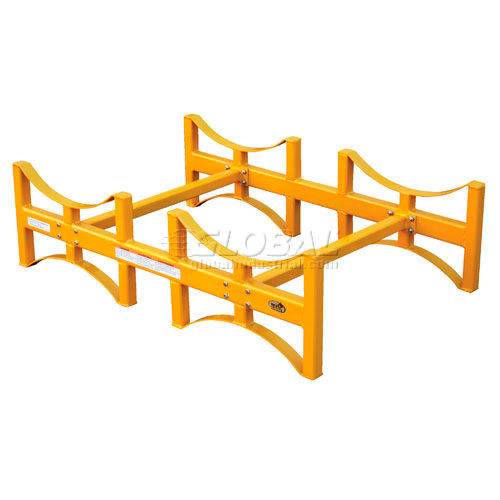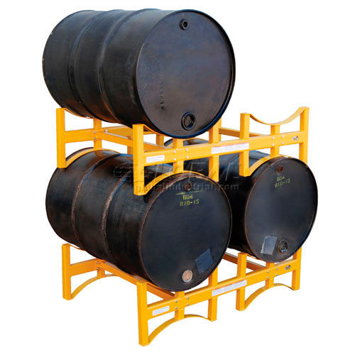 STACKABLE TWO DRUM STORAGE RACK Rack offers Horizontal 55 gallon Drum Storage in tight spaces. Drum racks can be stacked up to 4 high for safe and efficient 55 gallon drum storage. Horizontal drum racks allow for two-way fork lift access. Stacking drum racks feature " thick formed steel cradles and a safety yellow enamel finish. Easy bolt together assembly with hardware included. Note: It is not recommended to stack more than four racks high. Racks may be moved while loaded, but NOT while stacked.