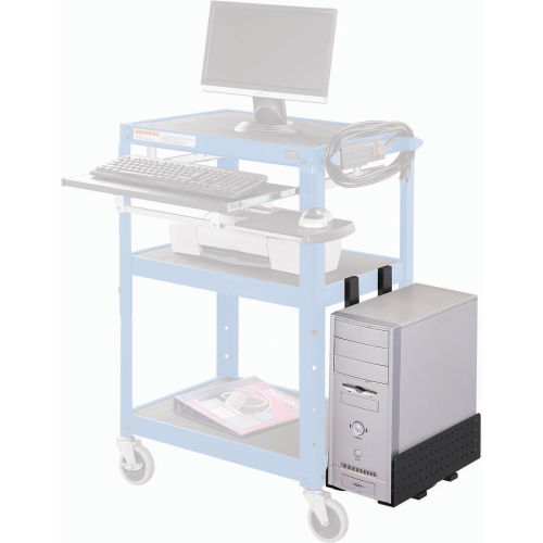GLOBAL INDUSTRIAL CPU HOLDER for LUXOR ADJUSTABLE STEEL WORKSTATION Attaches to either side or the workstation. 18"D and adjusts from 6" to 10"W. Only available in black.