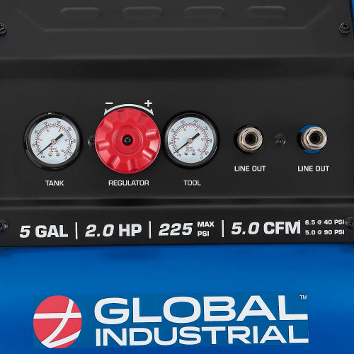 Global Industrial Portable Direct Drive Air Compressor, 2.0 HP, Gal, 5.0 CFM, Oil-Free.