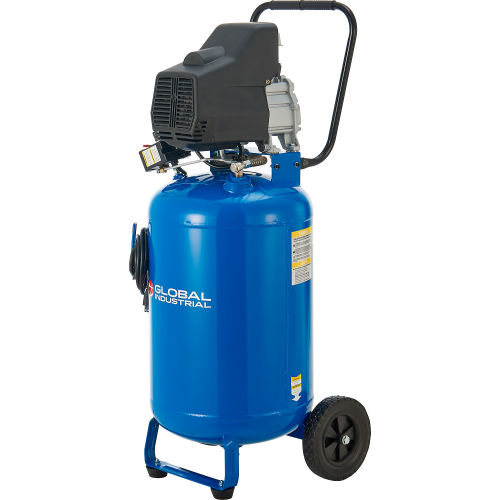 ✓ Cast iron sleeve cylinders ✓ Industrial-strength motor and pump ✓ High CFM output Support a wide variety of pneumatic and air tools with the Global Industrial Portable Vertical Oil-Lube Air Compressor. Built to withstand the rigors of the MRO, agriculture industry, and virtually any jobsite, this compressor packs a punch and is designed with heavy-duty use in mind. Ideal for dusting, inflation, air brushing, stapling finish nailing, operating air ratchets, small to mid-size impact wrenches, air hammers, and die grinders. In addition, the powerful 1.5 HP AC1220 is strong enough to operate small angle grinders and orbital sanders. The 20-gallon vertical tank is ideal for creating more floor space in your garage or shop. The compressor's rubber grip handle and oversized wheels make it easy to maneuver and move from one job to the next. 1-Year Limited Warranty.