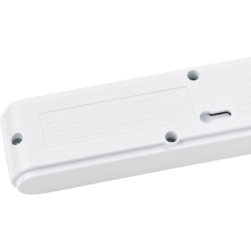 Global Industrial 12-in. 5+1 Outlet Strip & Surge Protector w/USB Ports, Joules, 6-ft Cord, White.