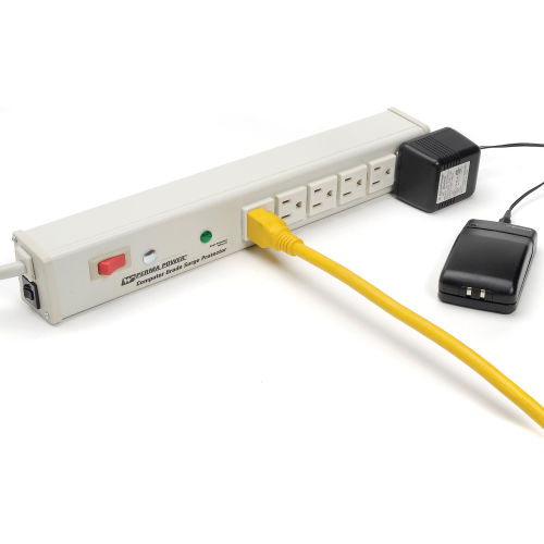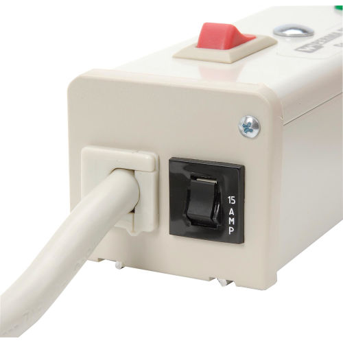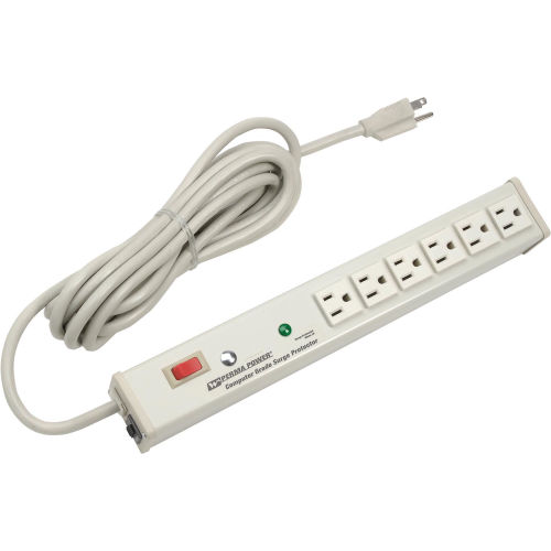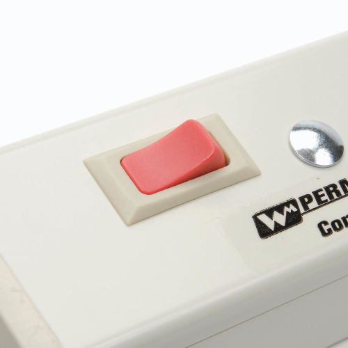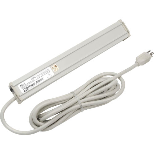 Reliable outlet center that is ideal for a wide range of applications and offers easy installation. Computer grade surge protection. Six outlets, lighted switch, durable putty white aluminum housing, 15A. Surge protector with (4.6m) 14/3 SJT putty white cord with NEMA 5-15 plug. 15 Amp/330V. Length 13 1/4" (337mm). Snap-on, slide-off mounting. Meets UL 1363 standards and CSA approved.