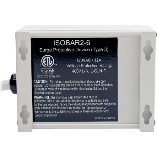 Loaded with a generous combination of high quality components, near indestructible all-metal case and enhanced noise filtration system, Isobars offer the highest level of protection. Robust surge suppression circuits with sine-wave tracking offer extreme levels of protection against the heaviest surge conditions exceeding IEEE 587 category A & B specifications and reducing 6,000V test surges to harmless levels under 35 volts. Isobar's unique protection system combines large toroidal chokes, ferrite rod-core inductors, HF/VHF capacitors and multiple layers of metal oxide visitors into a complete surge and EMI/RFI noise reduction system. ISOBAR2-6 offers 2 outlets with network-grade surge suppression rated at joules/48,000 amps. Widely spaced NEMA 5-15 outlets accommodate up to 2 large transformer plugs. Includes 6 foot AC line cord with space-saving angled input plug and keyhole mounting tabs. Lifetime Limited Warranty with $25,000 Ultimate Lifetime connected equipment insurance (USA & Canada Only).