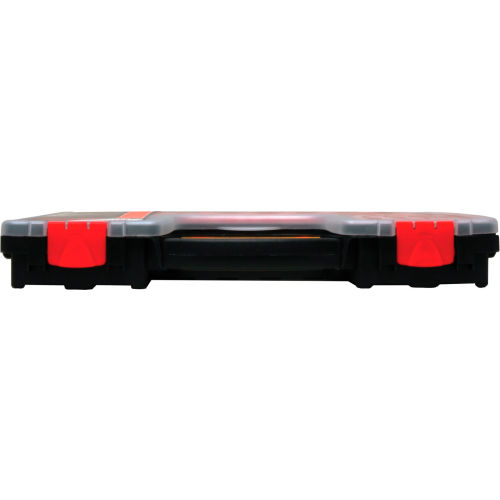 Plastic storage boxes and organizers are great for storing and organizing small parts & hardware. Made using durable, impact resistant plastic. Includes a transparent lid for clear viewing of contents. Lid is secured with two plastic latches. Plastic Organizers include small and large removable plastic bins and an easy-grip handle. - Pkg Qty 16.