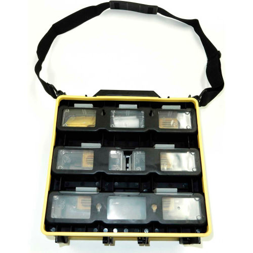 ShopSol Bin Compartment Case - 2 Sided, 15 Locking Bins, 26"L x 12"W x 3"H - Black/Yellow