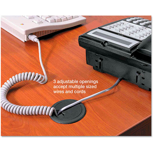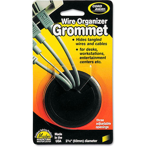 Master CordAway 00202 Adjustable Grommet, 2-3/8" Diameter, Black, Pack of 1 Neatly feed wires away from desktops and work surfaces. Opening adjusts to three different sizes to accommodate multiple wires. Use for new installation or replacement on office equipment, computer components, entertainment systems and more. Sold as pack of 1 grommet.