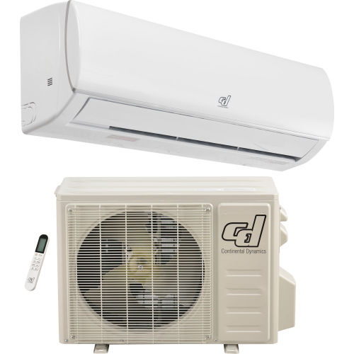 ✓ Offers coverage area of up to 650 ft ✓ Remote control option via smartphone (Apple IOS and Android) ✓ Wall-mount indoor evap, outdoor condenser, and 15' L connecting line sets included Continental Dynamics Ductless Air Conditioner Inverter Split System provides a great alternative to central AC systems as they do not require any ducting. These units provide cooling during summer months and heating during winter months. This system consists of a sleek wall mount indoor evaporator, an outdoor condenser unit, and 15' L connecting line sets. The Indoor unit hangs on a metal bracket (included) attached to an interior wall. These systems are operated by a display on the wall mount unit or by a wireless remote control (Included); just set your desired temperature and the system will maintain that temperature. Control your Ductless Air Conditioner from anywhere with your smartphone Apple IOS and Android compatible. 1-Year Limited Warranty. Instructions to download the app and set your system up are listed in the user manual. Other Key features of this system include: Independent Dehumidification24 Hour TimerTurbo ModeSleep ModeEco ModeHorizontal Auto SwingIntelligent DefrostAnti-cold WindAuto-restartSelf-troubleshootingLouver position memoryRefrigerant Leakage Detector.