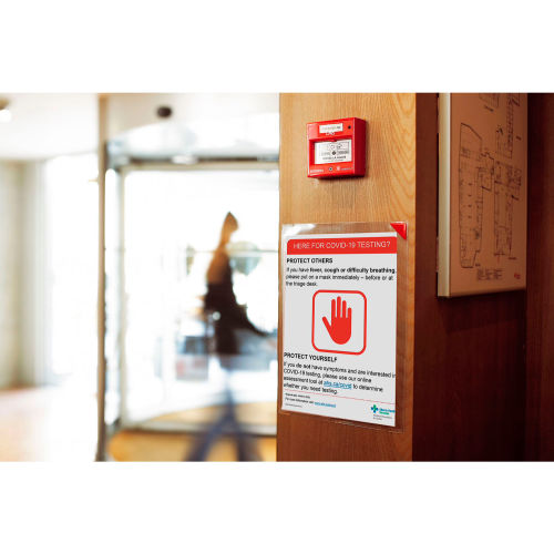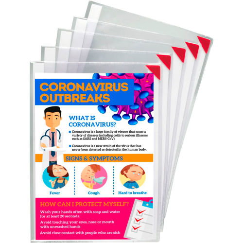 Tarifold Signage Pockets with Magnetic Closure, Repositionable, 5/Pack These repositionable self-adhesive signage pockets with 2 adhesive strips on the back are the fastest and easiest way to display paper information. The magnetic corner closure will securely hold letter-size documents in place. Can be used in either portrait or landscape mode. Will adhere to any non-porous, clean surface and removes without leaving residue behind. Ideal application to display documents on glass surfaces or shop windows. Made from non-glare rigid PVC material and with a top/side opening allows for quick and easy document loading. Will improve the image of your business documents that are on display for employees and customers alike.