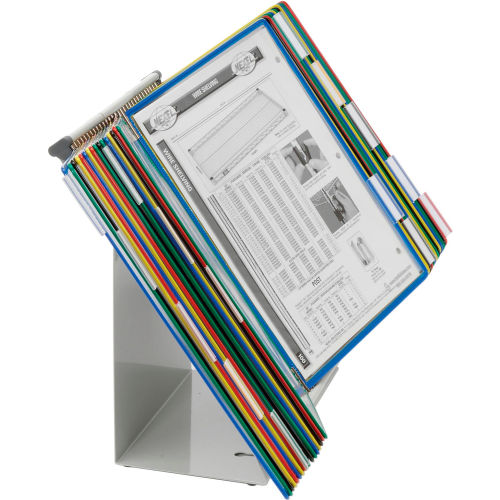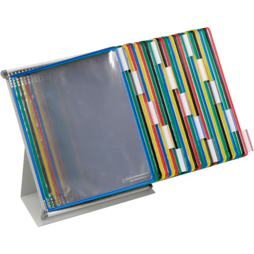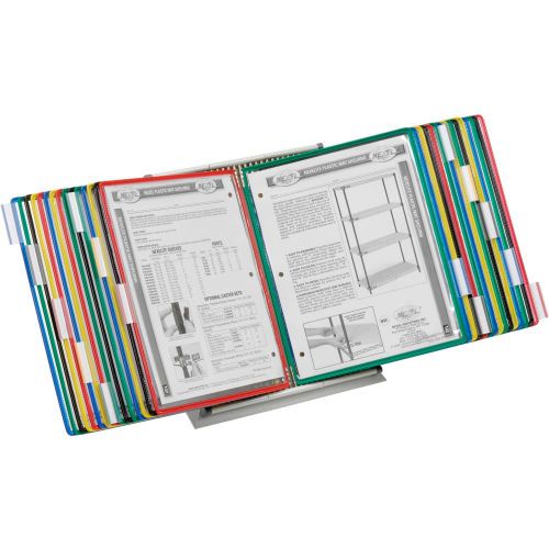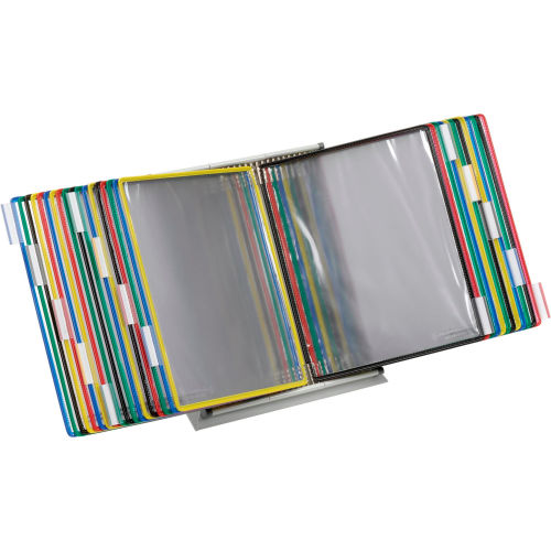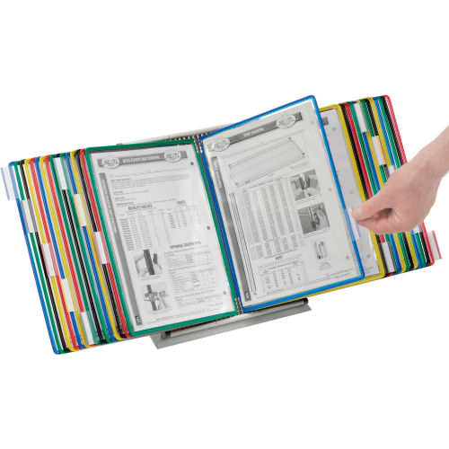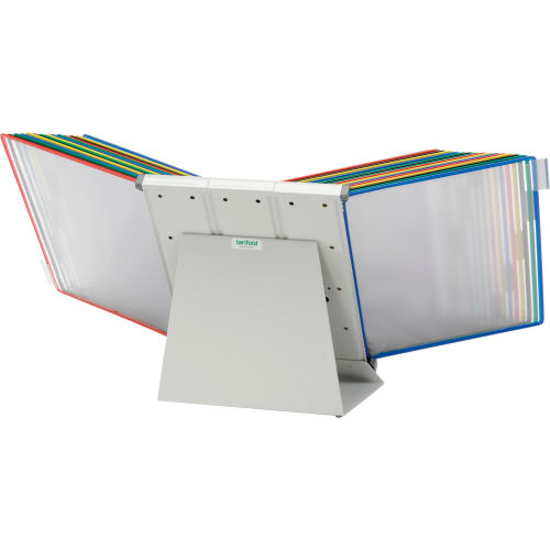 Desktop Starter Set with 30 Assorted Color Pockets. Maximize workplace productivity by placing important information at your fingertips with the Tarifold desktop organizer. Complete with desk base, universal mounting bracket, color-coded wire reinforced display pockets (each pocket holds 2 sheets), and pluggers (which support the pockets). Snap-on index tabs and hardware included.
