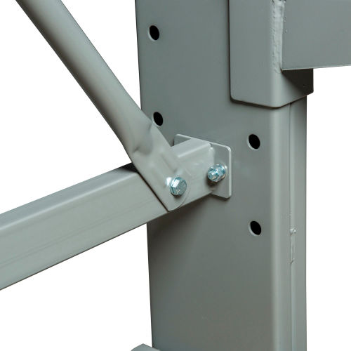 Expand the space of your existing Global Industrial Single Sided Medium Duty Cantilever Rack. The single sided add-on rack can be placed or connected easily with the compatible Global Industrial Single Sided Cantilever Rack Starter (model 320828). It's the perfect addition to your starter rack when you need more arm support to hold longer materials. This add-on piece features 3 individual 12" arms with lips. Arm Capacity is 600 lbs. per arm. Dimensions are 48"W x 33"D x 6'H. Please note that the loaded cargo must not exceed the bearing loading capacity of the unit. 1 Year Limited Warranty.