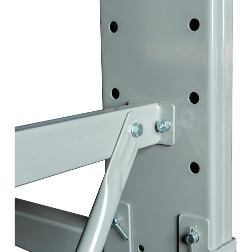 Expand the space of your existing Global Industrial Double Sided Medium Duty Cantilever Rack. The double sided add-on rack can be placed or connected easily with the compatible Global Industrial Double Sided Cantilever Rack Starter (model 320830). It's the perfect addition to your starter rack when you need more arm support to hold longer materials. This add-on piece features 8 individual 24" arms with lips. Arm Capacity is 1200 lbs. per arm. Dimensions are 48"W x 60"D x 8'H. Please note that the loaded cargo must not exceed the bearing loading capacity of the unit. 1 Year Limited Warranty.