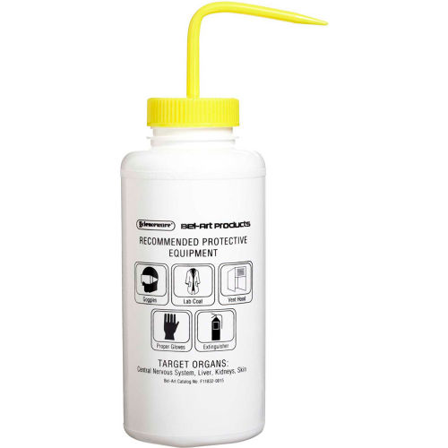 Buy Bel-Art LDPE Wash Bottles 117320015, 1000ml, Sodium Hypochlorite Label, Yellow Cap, Wide Mouth, 4/PK for $53.95 at @ Globalindustrial.com