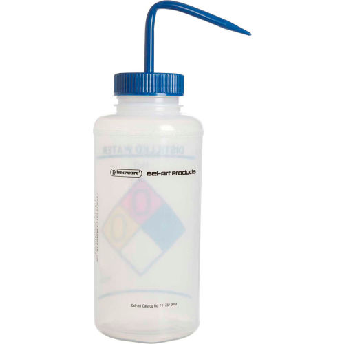 Buy Bel-Art LDPE Wash Bottles 117320004, 1000ml, Distilled Water Label, Blue Cap, Wide Mouth, 4/PK for $57.95 at @ Globalindustrial.com