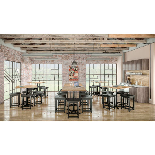 Get the warmth and feel from real wood with these vintage tops from KFI's Urban Loft Collection. These Cafe tables are great for break areas, casual meeting and collaborative spaces both large and small. The solid wood table top is made from the heartwood of the a Poplar tree for exceptional durability. Each 1.25" top is individually unique with natural variations in color and grain. Knots and saw cuts add to the look and feel of vintage wood. The top coat is a UV cured, water base finish. This technology minimizes hazardous air pollutants without sacrificing durability and performance. It's resistant to spills, stains, water and abrasions yet eco-friendly and formaldehyde free. The black X-Base has a 3" diameter 16 gauge column and cast iron base with floor glides. Made in the USA.