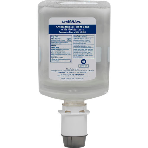 enMotion Gen 2 Antimicrobial Foam Soap with Moisturizers has a rich foaming lather and hypoallergenic formula to leave skin feeling fresh and is gentle enough for frequent washing and safe for use in food processing. Closed hygienic refill bottles install with one hand and dispense at least 99% of foam product before replacement is needed. Designed for use with enMotion Automated Touchless Soap Dispensers (sold separately). Packaged in 100% recyclable bottles that contain 25% post-consumer content, these foaming hand soap refills are also USDA BioPreferred. enMotion Gen2 Moisturizing Foam Soap Dispenser Refills can also help earn LEED credits. The closed hygienic refill bottles install with one hand and dispense at least 99% of foam product before replacement is needed, helping reduce the need for maintenance. Sold 2 refills per case.