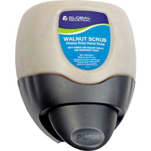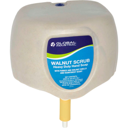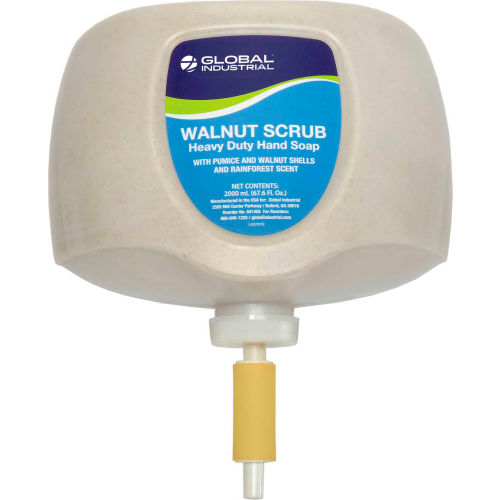 Global Industrial Walnut Scrub Heavy Duty Hand Cleaner contains all-natural scrubbers with no harsh solvents. Formulated with walnut shells, pumice and surfactants to help exfoliate the skin and remove the toughest soils. Contains mild cleansers and skin conditioners that are gentle and leave hands clean and smooth. Biodegradable formula. Refill bottle is constructed from a durable high density polyethylene that withstands tough environments and high traffic use. Clear refill bottles allow for easier maintenance and are simple to replace. For use with Global Industrial Heavy Duty Hand Cleaner Dispenser (sold separately). Pleasant rainforest scent. 2L refill. Sold 4 refills per case.