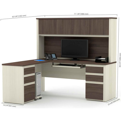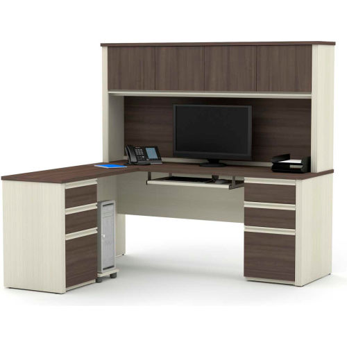 Buy Bestar L-Shaped Workstation - Double Pedestal - White Choc/Antigua - Prestige Series for $1,199.00 at @ Globalindustrial.com