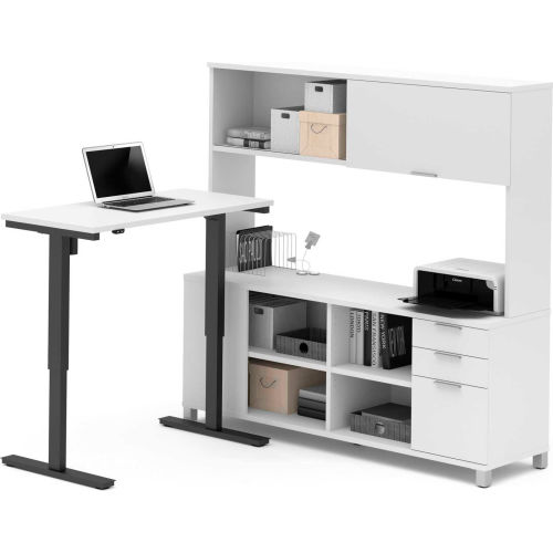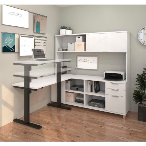 Buy Bestar L-Desk with Hutch and Electric Height Adjustable Table - White - Pro-Linea Series for $1,899.00 at @ Globalindustrial.com