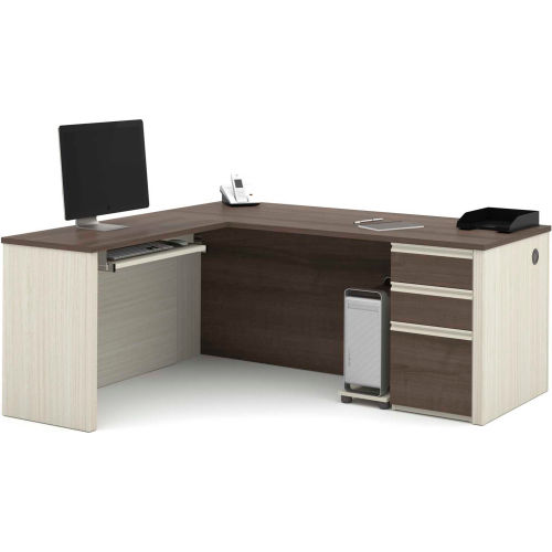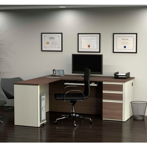 Buy Bestar L-Shaped Workstation with Pedestal - White Choc/Antigua - Prestige Series for $669.00 at @ Globalindustrial.com