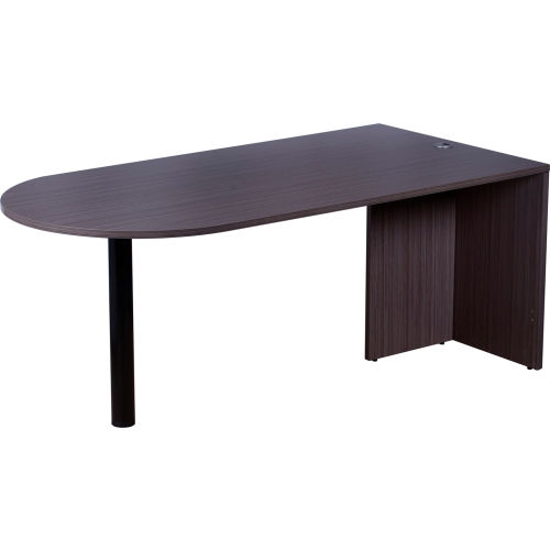 Bullet desk id intended for use with a return or a bridge if applicable in application. The unit extends the work surface and joins the component to create individual work stations. The Driftwood laminate is durable yet attractive. The unit can be used in either left or right handed configurations.