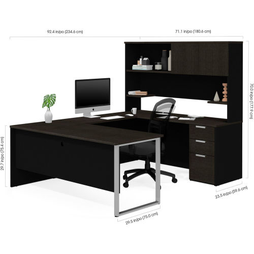 Bestar U-Desk with Hutch - Deep Gray and Black - Pro-Concept Plus Series