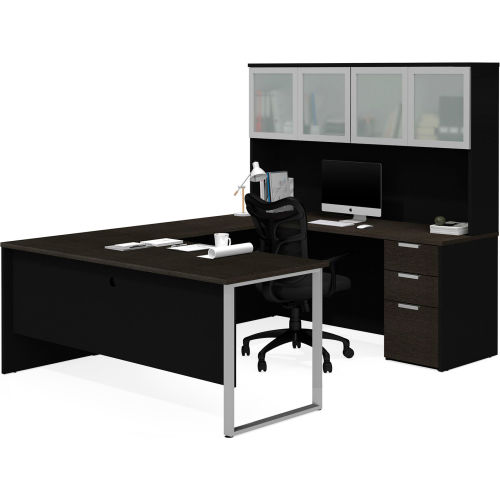 Buy Bestar U-Desk with Frosted Glass Door Hutch - Deep Gray and Black - Pro-Concept Plus Series for $1,399.00 at @ Globalindustrial.com