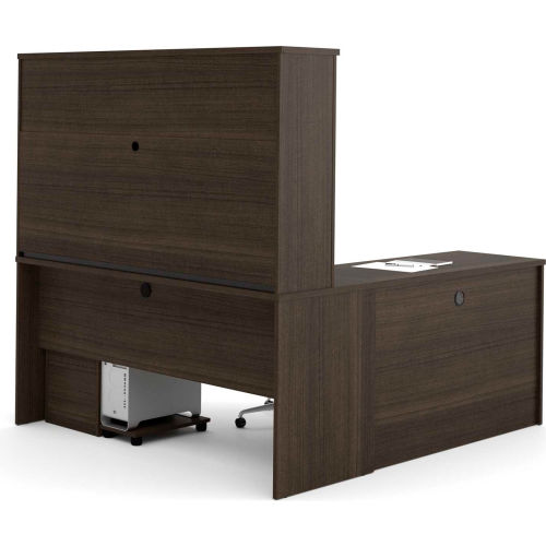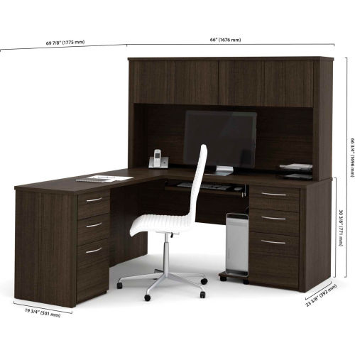 Bestar L-Shaped Desk and Hutch - - Dark Chocolate - Embassy Series