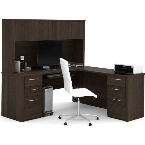 Buy Bestar L-Shaped Desk with Hutch - - Dark Chocolate - Embassy Series for $1,075.00 at @ Globalindustrial.com
