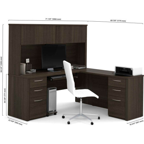 Bestar L-Shaped Desk with Hutch - - Dark Chocolate - Embassy Series